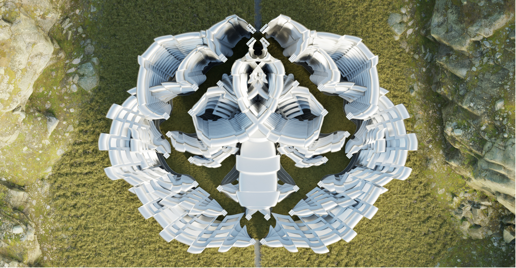 Then it generates curved bypasses between cores by opening the cloister at its base and in height, which then increase in width with respect to its branched hierarchy and the number of bypasses. From the bypass shafts the curved corridors are built.